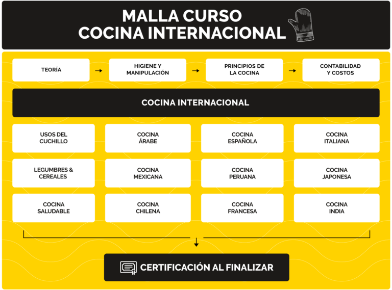 Si te apasiona la cocina y quieres ir un paso más adelante de tus conocimientos culinarios, este curso te permitirá adentrarte en un mundo de preparaciones clásicas, ricas recetas y además tendrás la oportunidad de conocer otras culturas gastronómicas del mundo con los platos más representativos de países como Francia, Italia, México o India, entre muchos más.