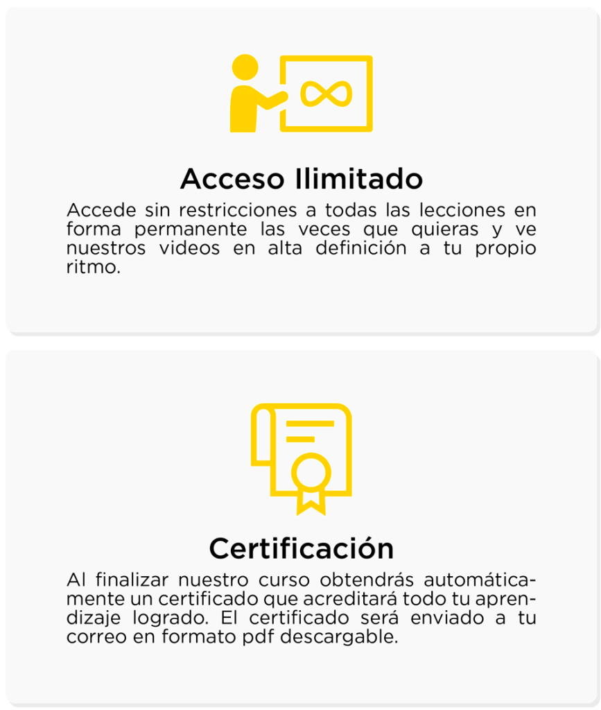 Inmediatamente luego del pago recibirás tu acceso para comenzar este curso. Podrás crear tu propia contraseña y enviaremos este respaldo a tu correo. Es un curso online que se adapta a tu ritmo, tú decide cuándo comenzar y cuándo terminar. No tiene un horarios definidos ya que todo el contenido ya está cargado para ti.